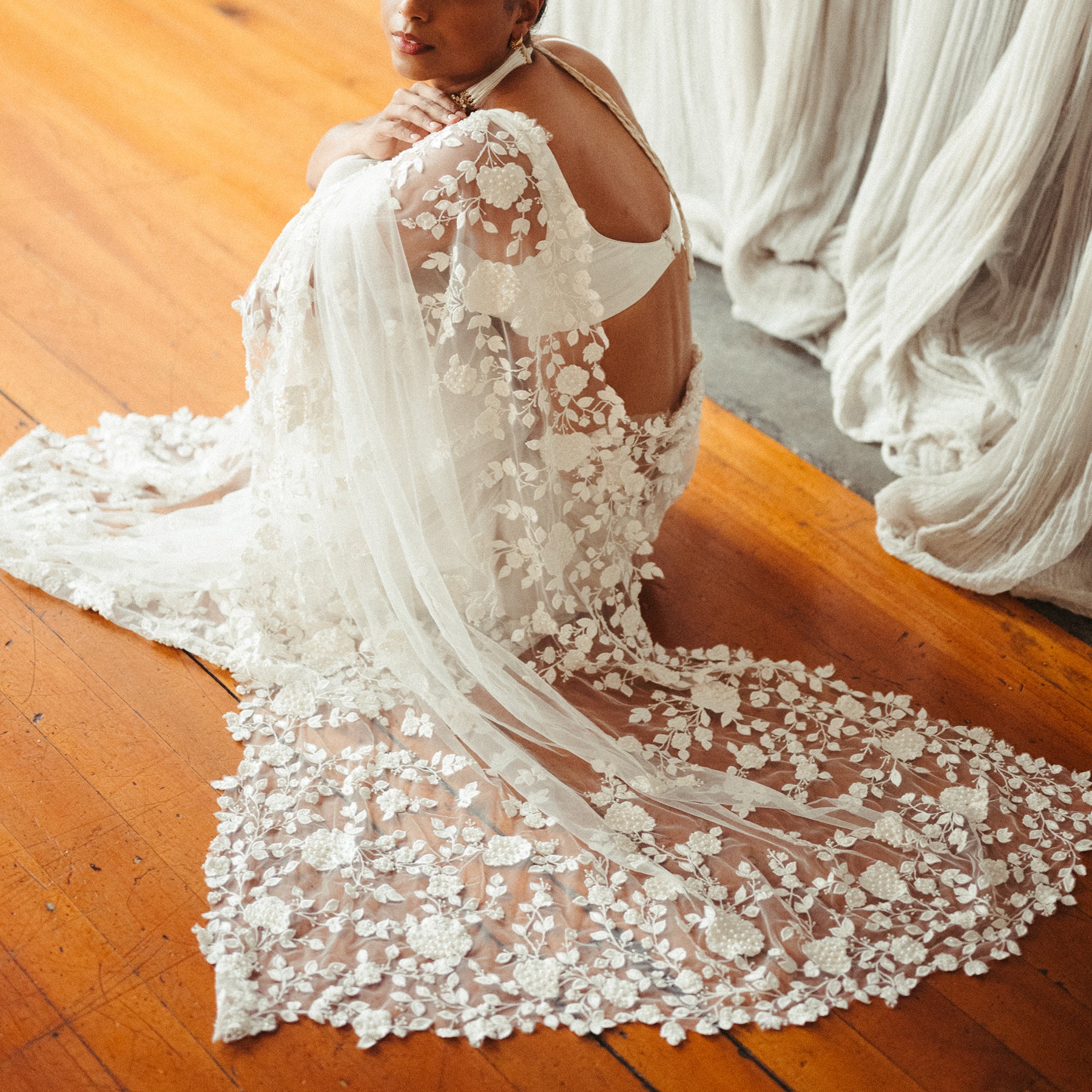 Our pieces are custom made for each bride. Please allow 90 business days (approx. 4 months) from date of order, for delivery. For expedited orders, please email us at care@byelora.com.